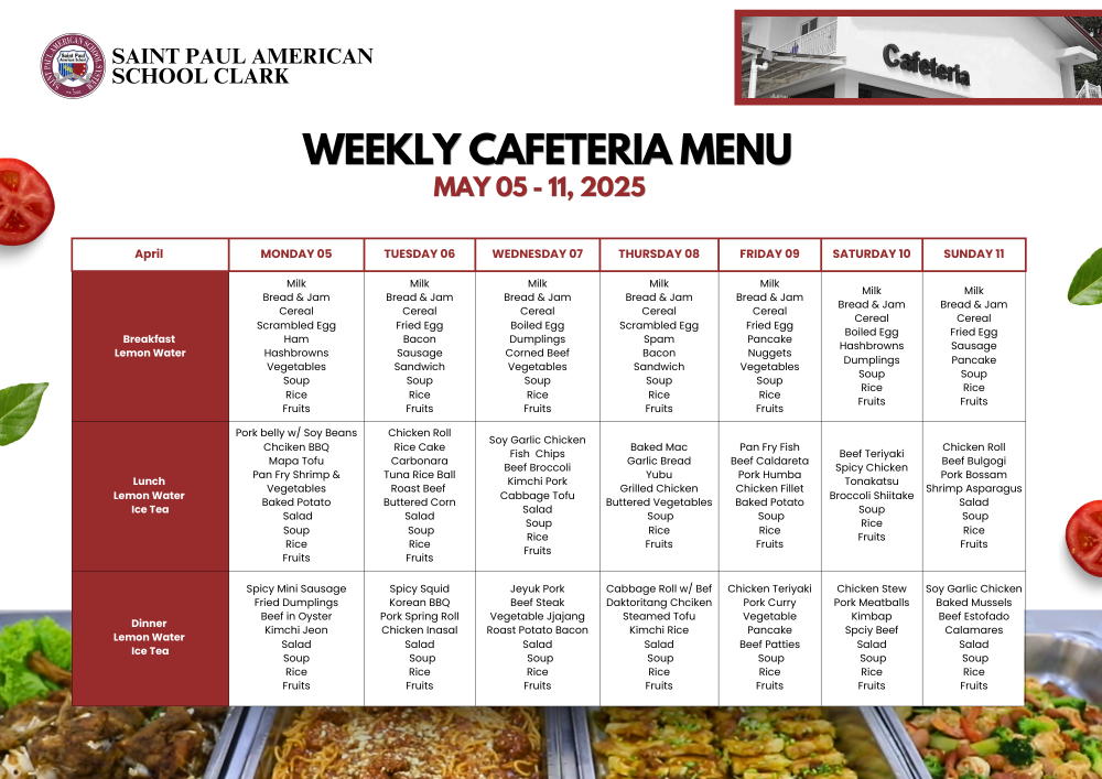 Weekly Cafeteria Menu May 5 - 11, 2025