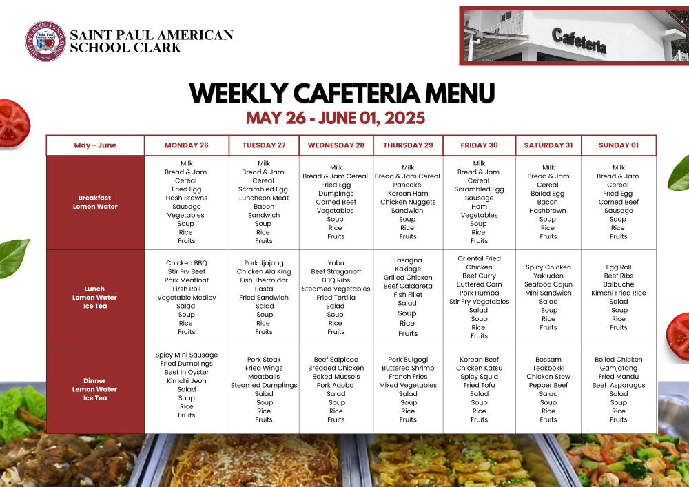 Weekly Cafeteria Menu May 26 - June 1, 2025