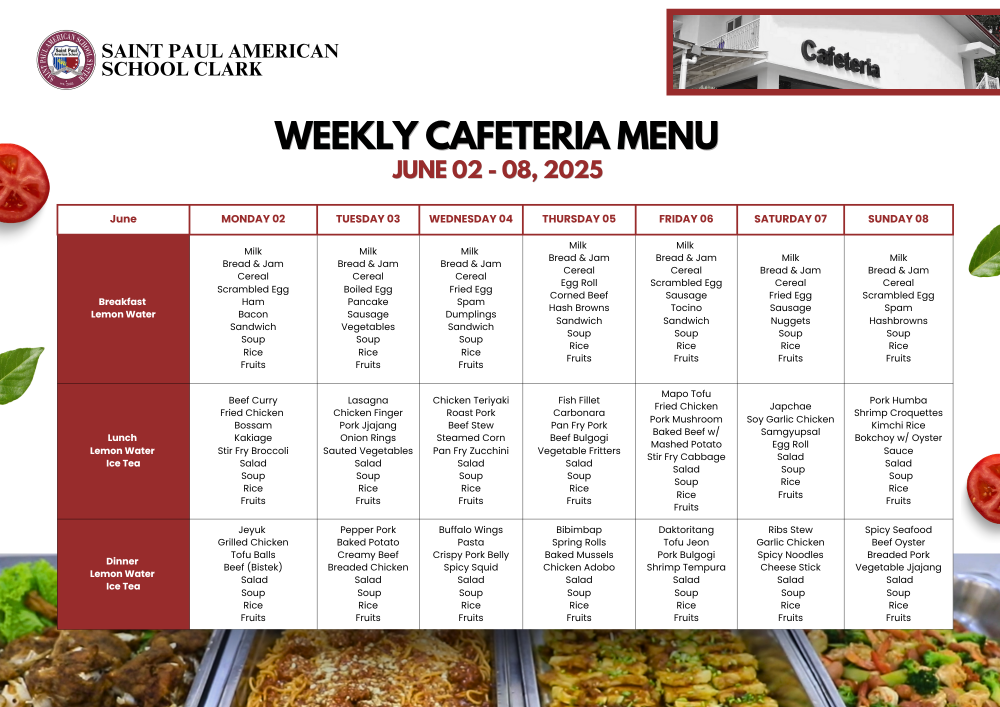 Weekly Cafeteria Menu June 02 - 08, 2025