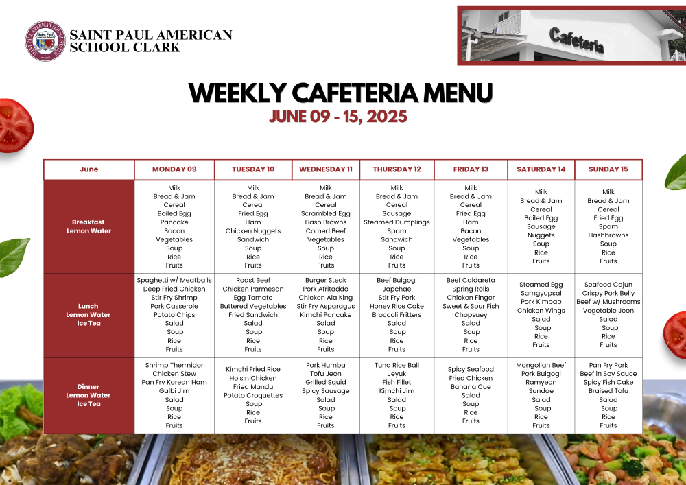 Weekly Cafeteria Menu June 09 - 15, 2025